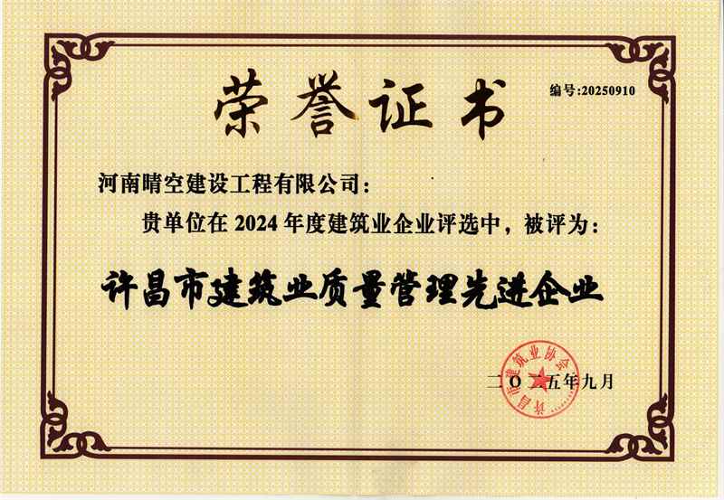 2025年许昌市建筑业先进企业