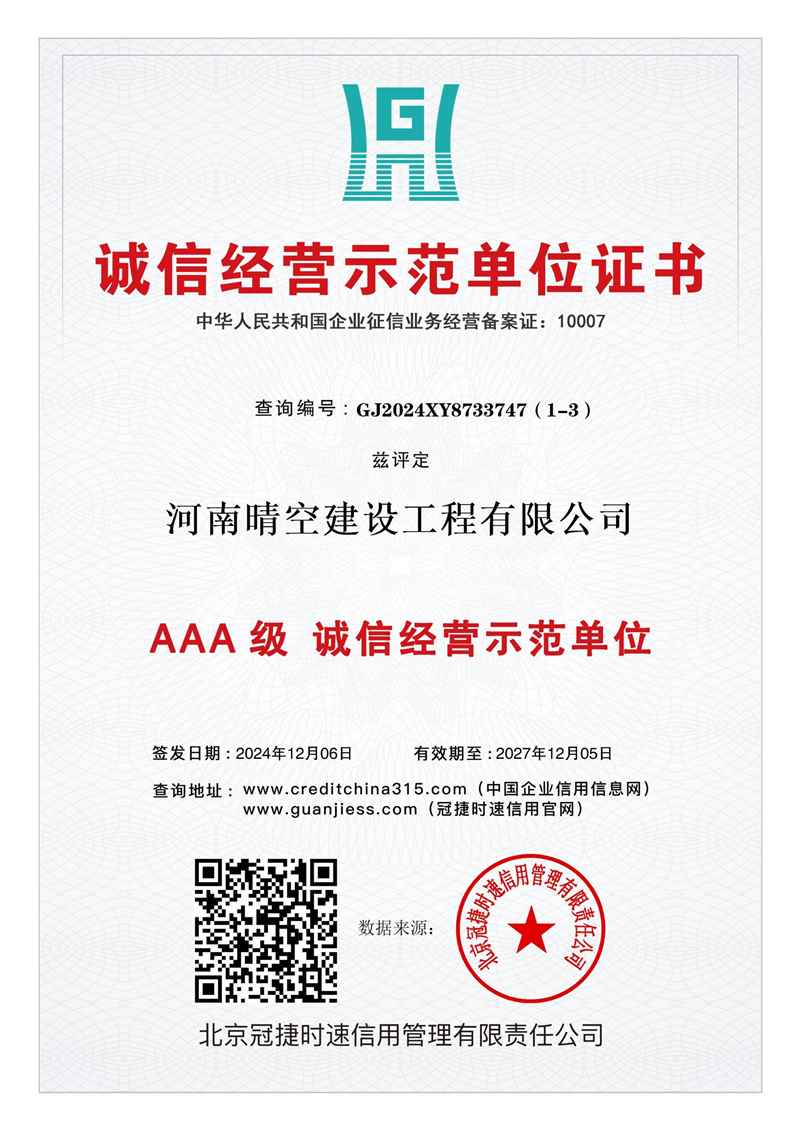 AAA级诚信经营信用单位